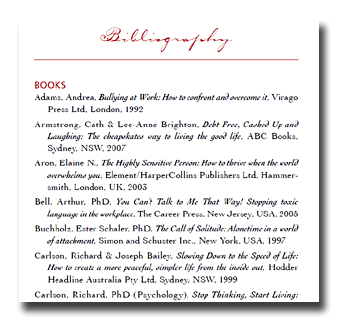 The bibliography is very comprehensive and covers the whole bullying subject area.